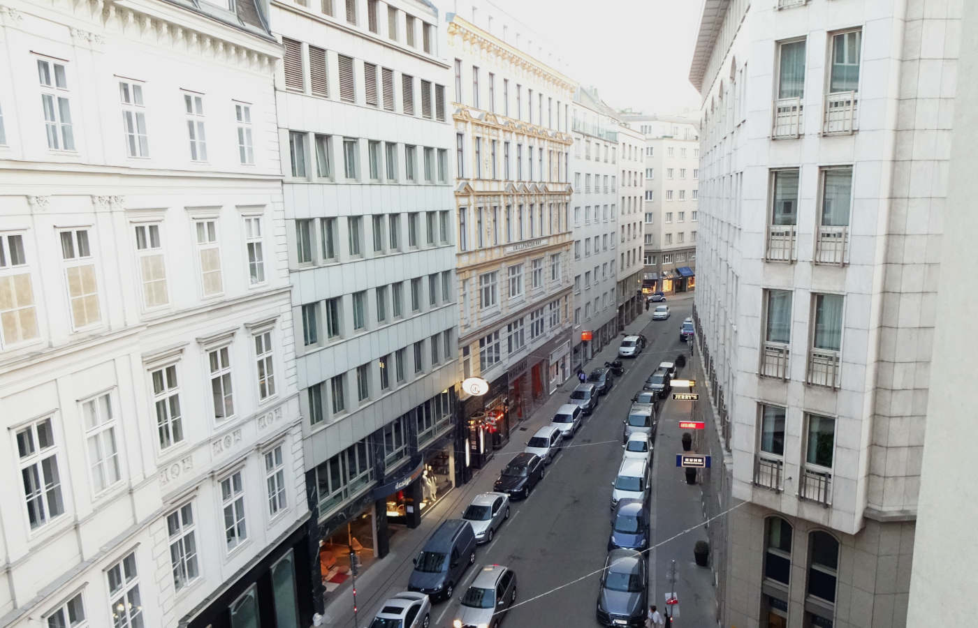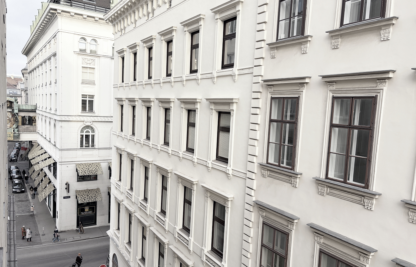 In einem gepflegten Gebäudekomplex aus Mitte der 50iger Jahre. Gelegen zwischen dem Hohen Markt und der Landskrongasse. Um schnell nach Hause zu kommen, können Sie zwischen beiden Eingängen wählen. Die Postadresse lautet Landskrongasse.Einkaufen und CO - mit Bus, Bim und U-Bahn!