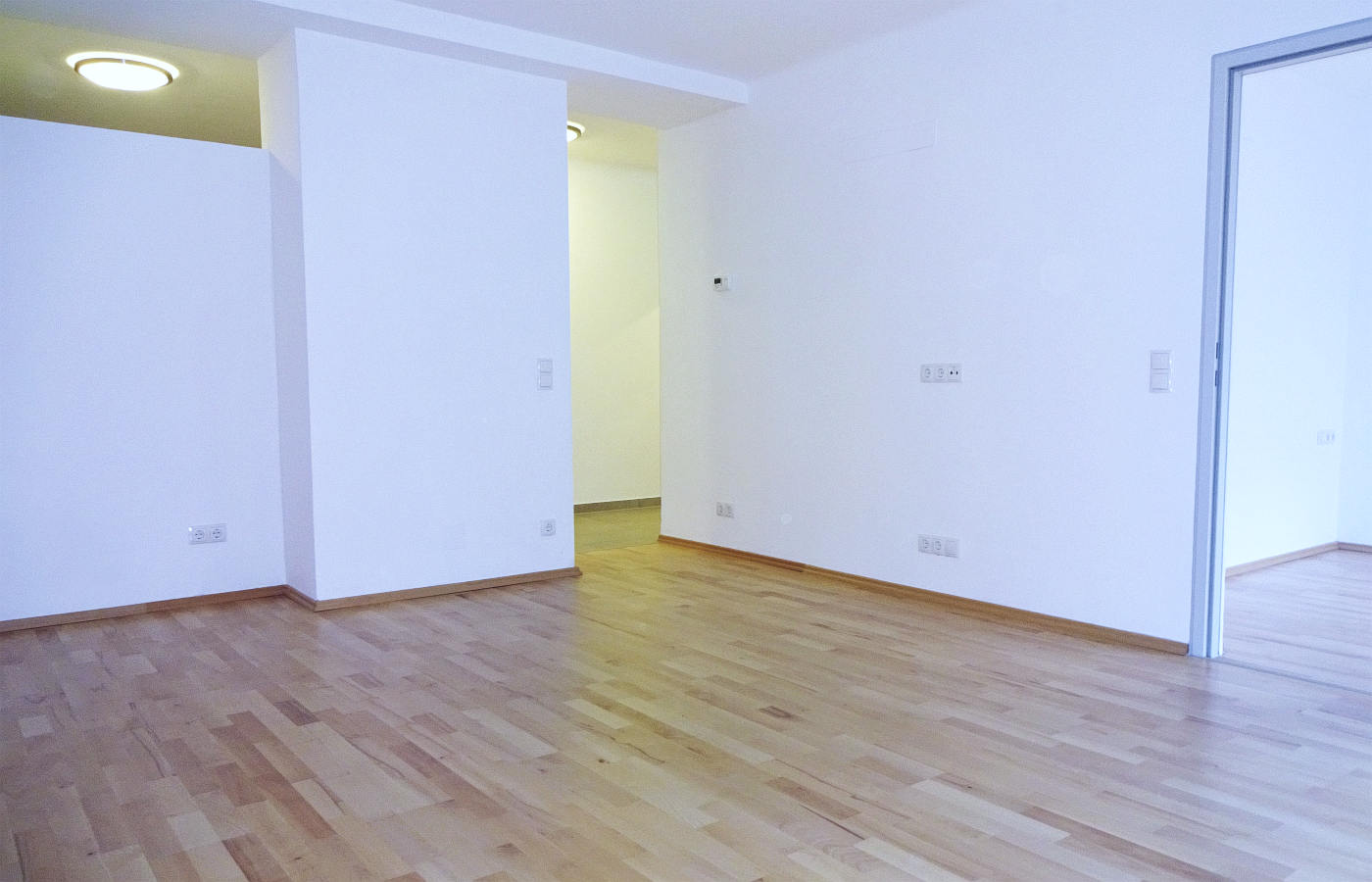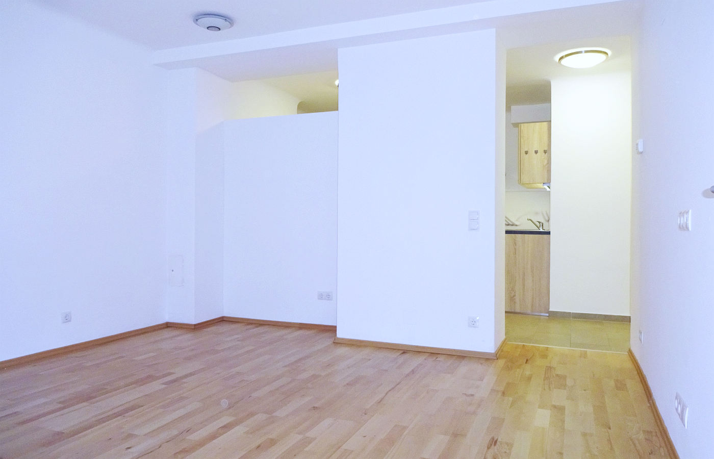 Der Vorraum ist ausreichend groß für die Garderobe und führt fließend in den Küchen-/Essbereich. Von hier aus ist auch das Badezimmer erreichbar.Das Wohnzimmer ist großzügig geschnitten, ist zur Küche hin offen gehalten und führt ins kompakte Schlafzimmer. Das Badezimmer ist ausgestattet mit Dusche, Waschbecken und Toilette. Es präsentiert sich elegant und funktional und bietet einen angenehmen Rahmen für einen gelungenen Start in den Tag. Gekocht wird elektrisch, eine Gasetagenheizung (Therme) sorgt für wohlige Wärme.